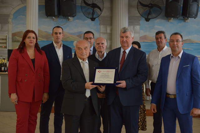 Ο νυν Πρόεδρος του Συλλόγου με σύσσωμο το Δ.Σ. απένειμαν τιμητική πλακέτα στον κ. Παπαϊωάννου για την μεγάλη και πολυετή προσφορά του στην προώθηση και την ενίσχυση του θεσμού της Εθελοντικής Αιμοδοσίας στον Δήμο μας, αλλά και στην ευρύτερη περιοχή γενικότερα.