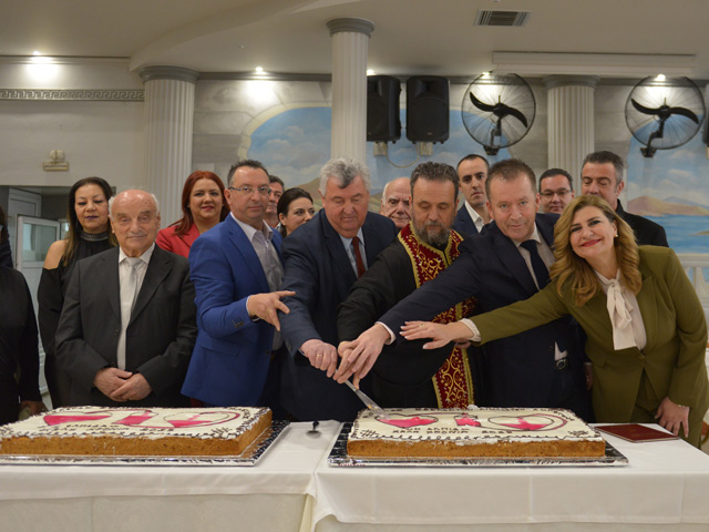 Ακολούθησε η κοπή της πρωτοχρονιάτικης πίτας και οι καθιερωμένες ευχές για το Νέο Έτος από τον παριστάμενο ιερέα Νεκτάριο Φωκίδη και τον Πρόεδρο του Συλλόγου.