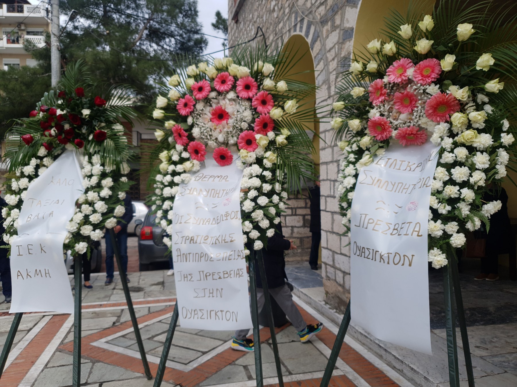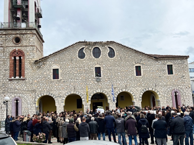 Ο σύζυγος της σε βαθιά οδύνη είπε μέσα από τον Ιερό Ναό ευχαριστώ σε όλους όσους την τίμησαν και στον Μητροπολίτη που τέλεσε την εξόδιο ακολουθία.