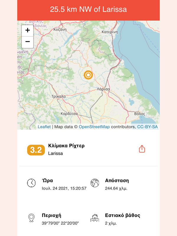 Σεισμός με 3,2 βαθμούς της κλίμακας ρίχτερ στην περιοχή μας