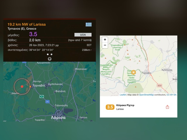 Σεισμός 3,5 ρίχτερ στον Τύρναβο πριν από λίγο