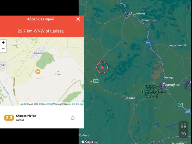 Σεισμός 3 ρίχτερ στην Ελασσόνα