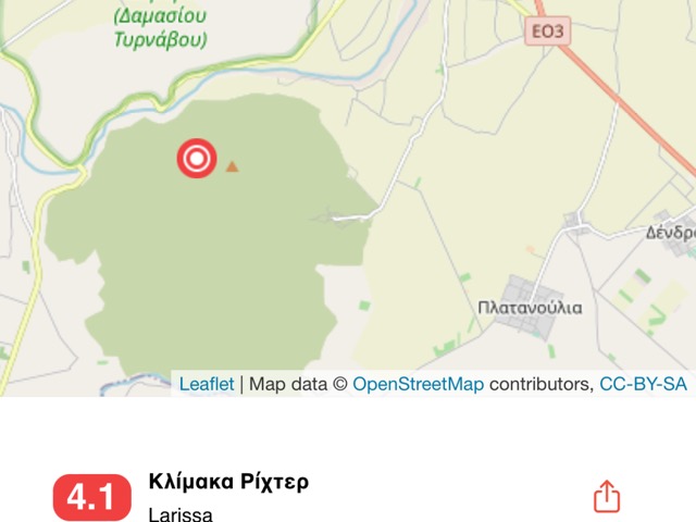 Σεισμός 4,1 βαθμών ρίχτερ στον Τύρναβο πριν από λίγο