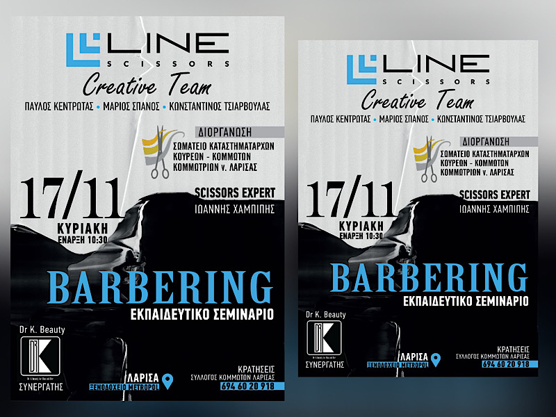 Το Σωματείο Καταστηματαρχών Κουρέων Κομμωτών Κομμωτριών Νομού Λάρισας διοργανώνει σεμινάριο μπάρμπερ στις 17 Νοεμβρίου και ώρα 10:00 π.μ στο ξενοδοχείο Μετροπόλ.