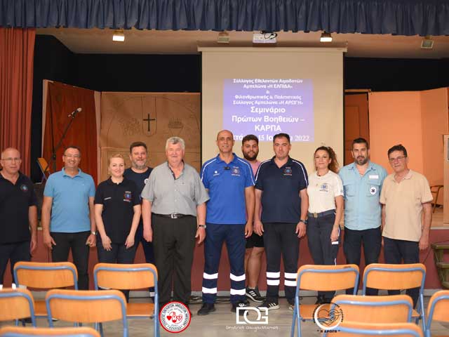 Η διοργάνωση του συγκεκριμένου σεμιναρίου όμως, έχει σχέση με τον απινιδωτή που απέκτησαν οι Σύλλογοί μας, από μιά χορηγία, τον οποίο εντός των ημερών θα τοποθετήσουμε σε κεντρικό και ιδιαίτερα προσβάσιμο σημείο, ώστε εύκολα να μπορεί να χρησιμοποιηθεί από όσο περισσότερους Συμπολίτες μας, για να αντιμετωπίσουμε αποτελεσματικά αιφνίδια καρδιοαναπνευστικά περιστατικά.