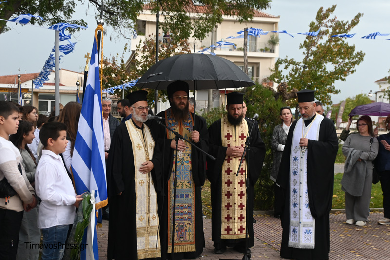 Η εκδήλωση ξεκίνησε με επιμνημόσυνη δέηση, που τελέστηκε από τον ιερό κλήρο της πόλης, ενώ στη συνέχεια πραγματοποιήθηκε η κατάθεση στεφάνων από τις μαθητικές αντιπροσωπείες, ως ένδειξη ευγνωμοσύνης και μνήμης προς τους πεσόντες.