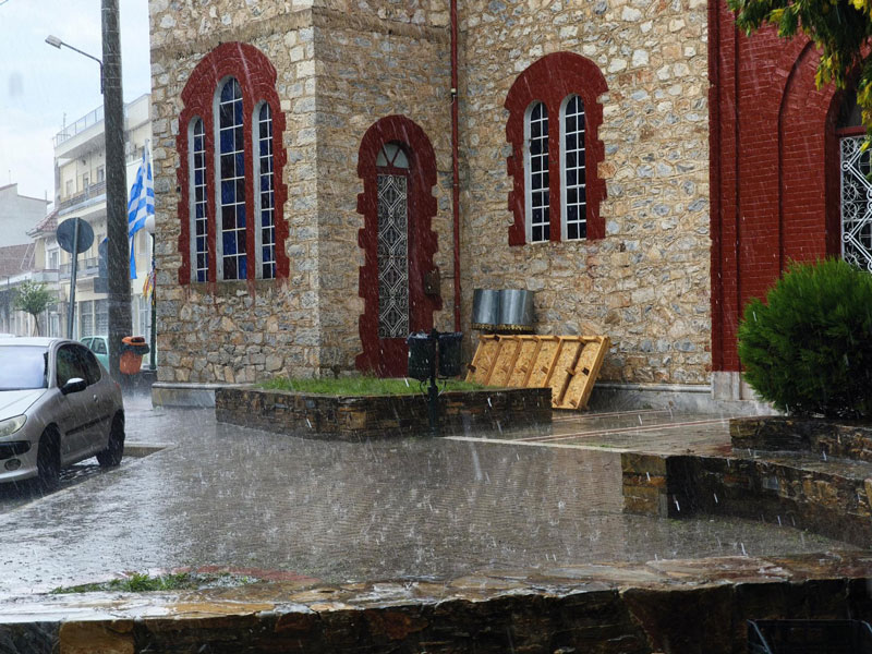 Σφοδρή κακοκαιρία στον Τύρναβο: Δυνατή βροχή, μπουμπουνητά και χαλάζι μέσα στην πόλη