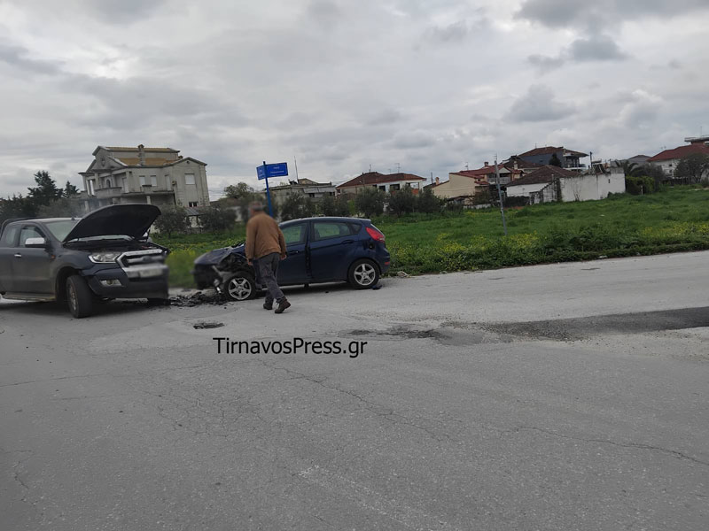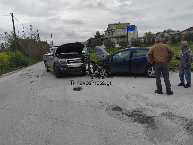 Σφοδρή σύγκρουση δύο οχημάτων στον Τύρναβο – Δύο τραυματίες