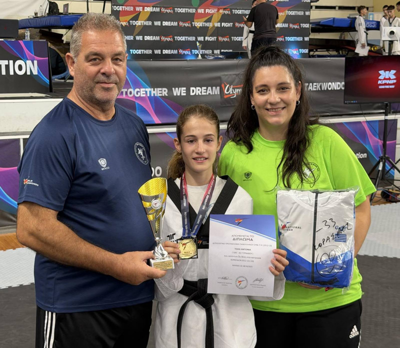 Ο Δήμος Τυρνάβου και εγώ προσωπικά εκφράζουμε τα θερμά μας συγχαρητήρια στη νεαρή αθλήτρια Αντωνία Τόλη του Αθλητικού Ομίλου ΤΑΕΚΒΟΝΤΟ Τυρνάβου για την κατάκτηση του Χρυσού μεταλλίου και την ανάδειξή της σε πρωταθλήτρια Ελλάδας στην κατηγορία των 33 κιλών, στο Πανελλήνιο Πρωτάθλημα ΤΑΕΚΒΟΝΤΟ που διεξάγεται στη Χαλκίδα.