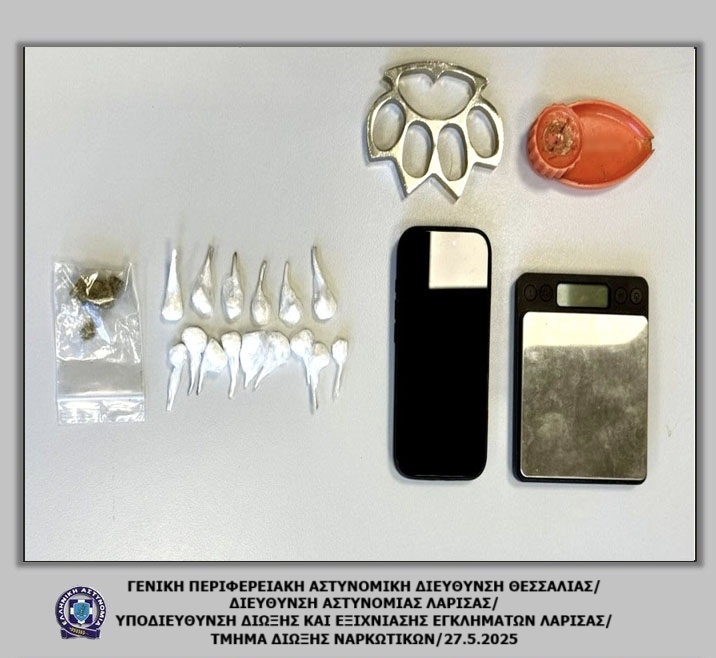 Συνελήφθη, χθες (26-05-2025) το μεσημέρι στη Λάρισα, από αστυνομικούς του Τμήματος Δίωξης Ναρκωτικών της Υποδιεύθυνσης Δίωξης και Εξιχνίασης Εγκλημάτων Λάρισας, -1- ημεδαπός άνδρας, σε βάρος του οποίου σχηματίστηκε δικογραφία για παράβαση των νομοθεσιών περί ναρκωτικών και περί όπλων.