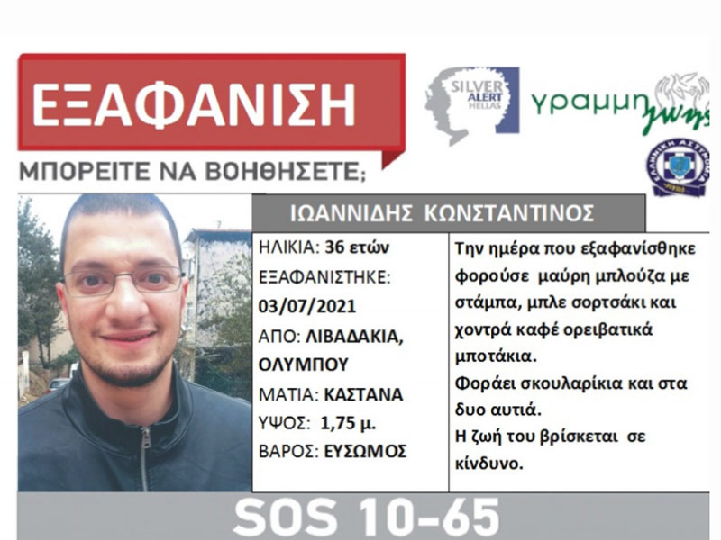 Η ΓΡΑΜΜΗ ΖΩΗΣ, ειδοποιήθηκε από τους οικείους του το βράδυ της 12/07/2021 και μετά τη συγκέντρωση των απαιτούμενων δικαιολογητικών, ενεργοποιεί τον Κοινωνικό Συναγερμό SILVER ALERT, για την κινητοποίηση όλων για την ανεύρεσή του.