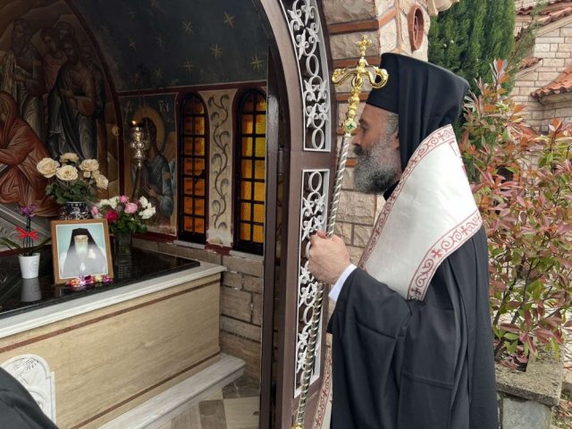 Ο Αρχιεπίσκοπος Αυστραλίας, αφού προσκύνησε στον Ιερό Ναό της Μονής, μετέβη στον τάφο του Μακαριστού Μητροπολίτου Λαρίσης κυρού Θεολόγου, όπου και τέλεσε τρισάγιο. Στη συνέχεια περιηγήθηκε στο νέο Καθολικό της Μονής, θαύμασε την αγιογραφική εργασία, η οποία βρίσκεται σε εξέλιξη, θαύμασε τον ρυθμό της Μονής και, ακολούθως, είδε το υπαίθριο μουσείο, όσο μέχρι στιγμής έχει δημιουργηθεί, όπου εκτίθενται αρχαία κειμήλια από την αρχαιοελληνική, ήδη, περίοδο, τα οποία θα διακοσμούν πλέον τον περίβολο της Μονής.