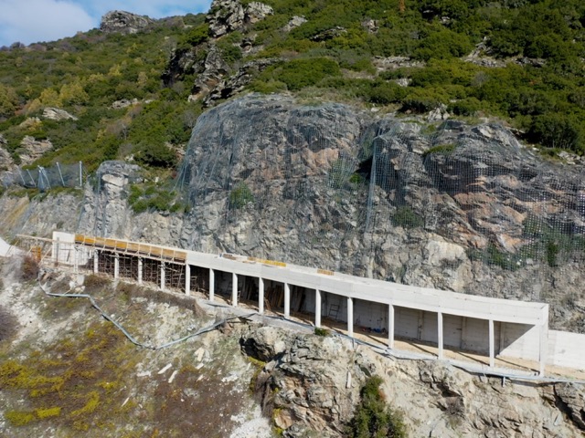 Ολοκληρώνονται από την Περιφέρεια Θεσσαλίας οι εργασίες κατασκευής σκεπάστρου για προστασία από καταπτώσεις βράχων στο οδικό τμήμα που συνδέει τους οικισμούς της Ροδιάς και της Συκαμινέας.