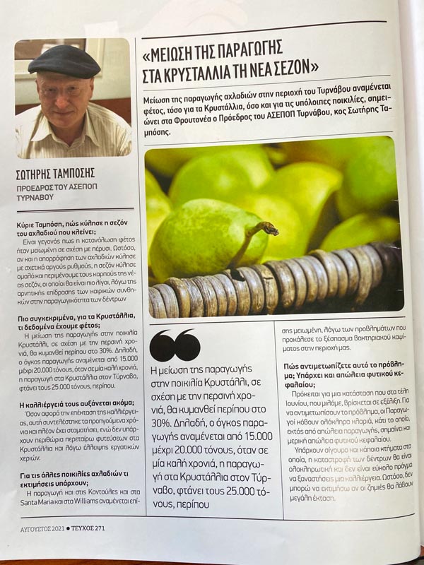 Κύριε Ταμπόση, πως κύλησε η σεζόν του αχλαδιού που κλείνει?