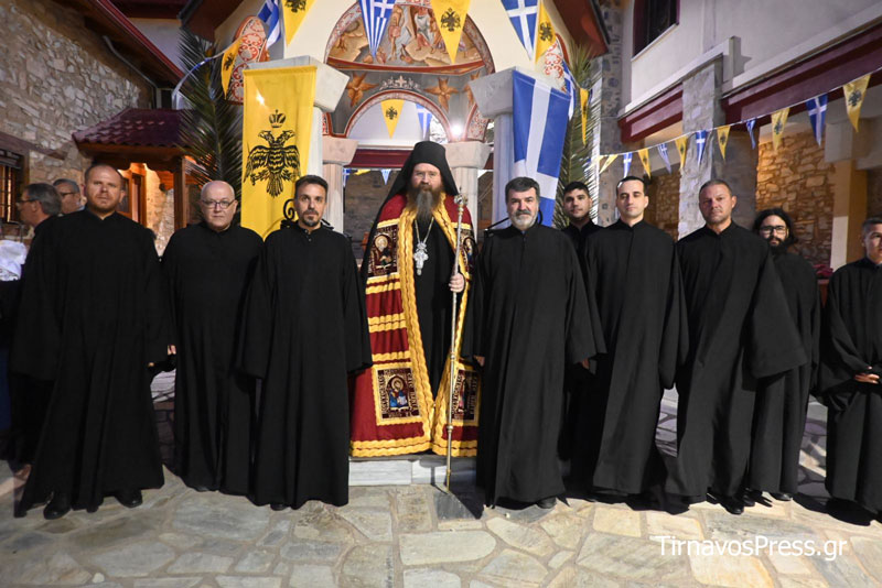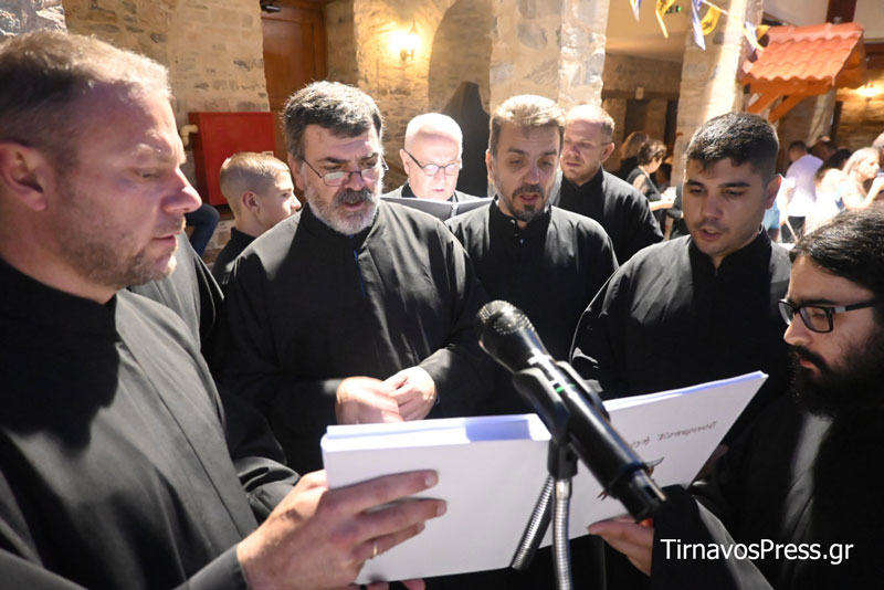 Η ακολουθία έλαμψε με την παρουσία δύο εξαιρετικών χορωδιών: στο δεξί αναλόγιο έψαλλε η χορωδία του Αγίου Δημητρίου Θεσσαλονίκης, ενώ το αριστερό κόσμησε η χορωδία του Δημοτικού Ωδείου Λάρισας, υπό τη διεύθυνση του Πρωτοψάλτη Δημητρίου Καραγιαννάκη. Οι μελωδίες αντήχησαν στα βουνά και πλημμύρισαν την καρδιά κάθε προσκυνητή με συγκίνηση και γαλήνη.