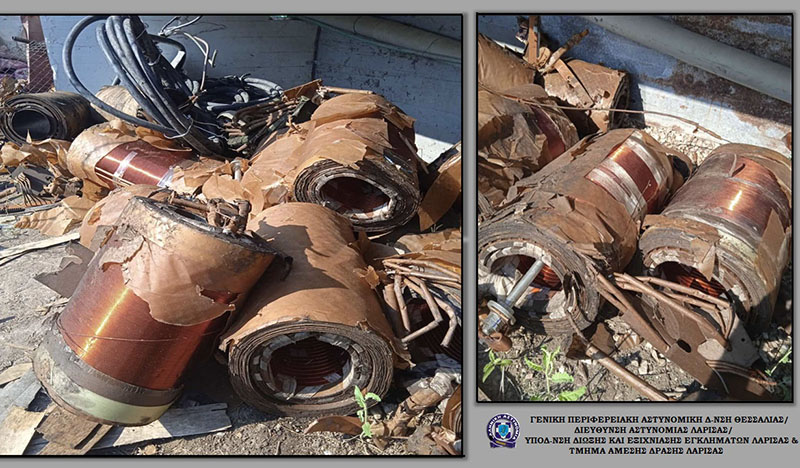 Κατασχέθηκαν, μεταξύ άλλων, τεμάχια τυλιγμάτων χαλκού, τμήματα καλωδίων χαλκού και διάφορα εργαλεία