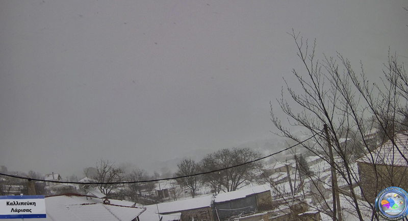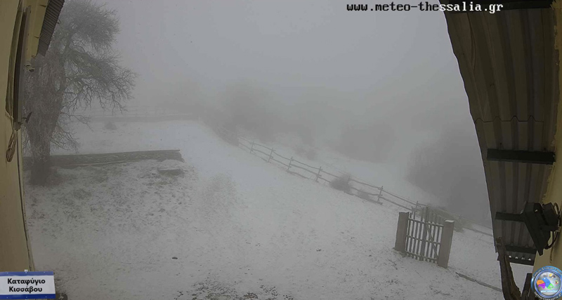 Στα λευκά τόσο η Καλλιπεύκη όσο και το καταφύγιο Κισσάβου, όπως καταγράφουν οι κάμερες του meteo-thessalia.gr: