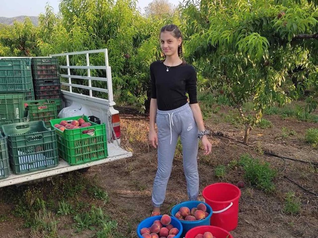 Και παρόλο που δεν τρελαίνεται η μικρή «αμαζόνα» για τα άλογα, της αρέσει πολύ να σηκώνεται το πρωί στις 6, να πηγαίνει στο κτήμα και να μαζεύει ροδάκινα.