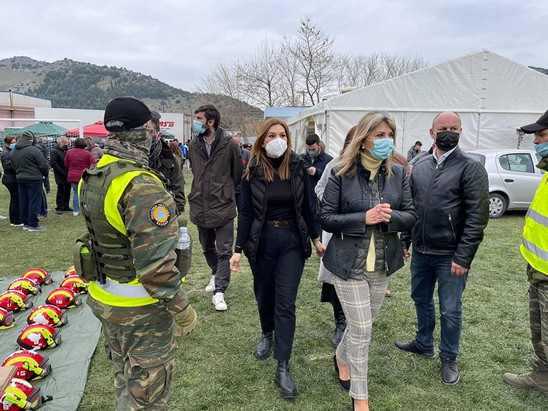 Η κα Μπίζιου, η οποία επισκέφτηκε τα χωριά Δαμάσι, Μεσοχώρι, Βλαχογιάννι, Συκέα, Παλαιόκαστρο και Φαλάνη είχε την ευκαιρία να μιλήσει με πολίτες που υπέστησαν σημαντικές ζημιές από το σεισμό, αλλά και με μικρά παιδιά που έχουν διακόψει τα μαθήματα τους.