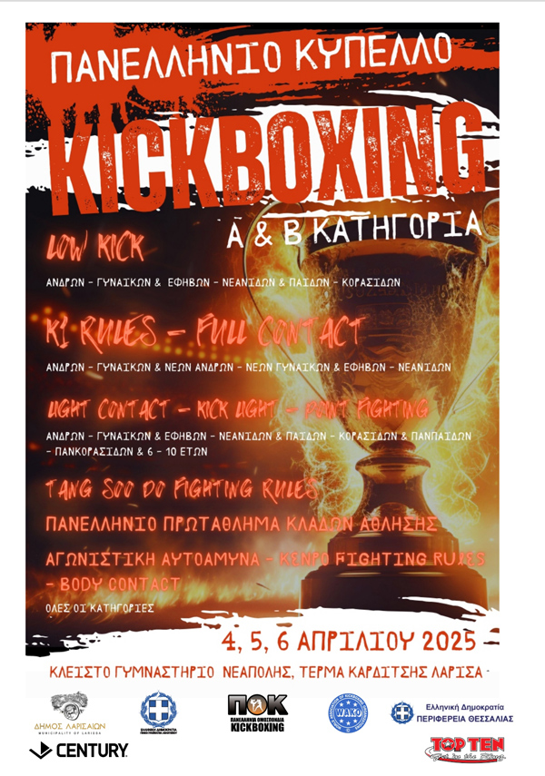 Στη Λάρισα το Πανελλήνιο Κύπελλο Kickboxing και το Πρωτάθλημα Κλάδων Άθλησης – Από τις 4 ως τις 6 Απριλίου