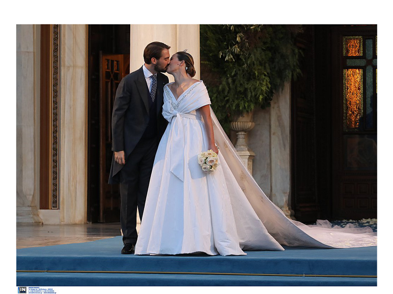 Επέλεξε και για τον θρησκευτικό γάμο να φορέσει Chanel, ενώ λέγεται ότι το νυφικό έφθασε μεμονωμένα σε πολλά κιβώτια. Η νύφη φορούσε και την εντυπωσιακή tiara της τέως βασίλισσας Άννα Μαρία, που φόρεσαν στον γάμο τους η Μαρί Σαντάλ και η Τατιάνα Μπλάτνικ.