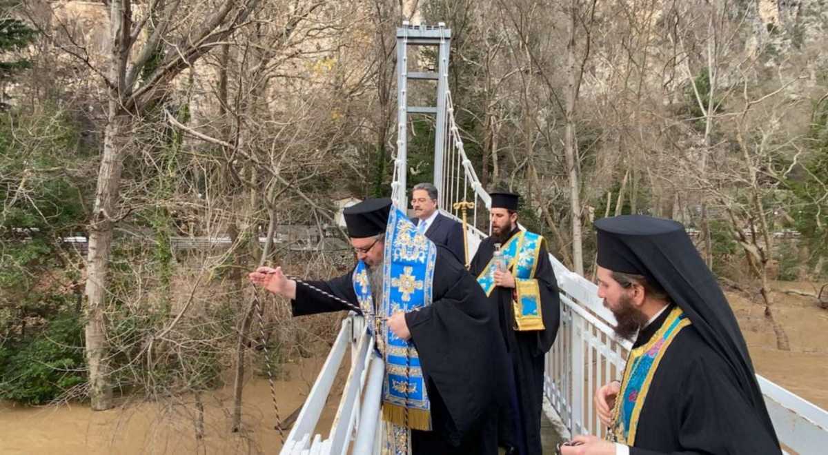 και θα τελέσει την ακολουθία του αγιασμού των υδάτων έμπροσθεν του Ιερού Αγιάσματος και ακολούθως, θα ευλογήσει τα Ύδατα του ποταμού Πηνειού επί της εκεί κρεμαστής γέφυρας ρίχνοντας τον Τίμιο Σταυρό.