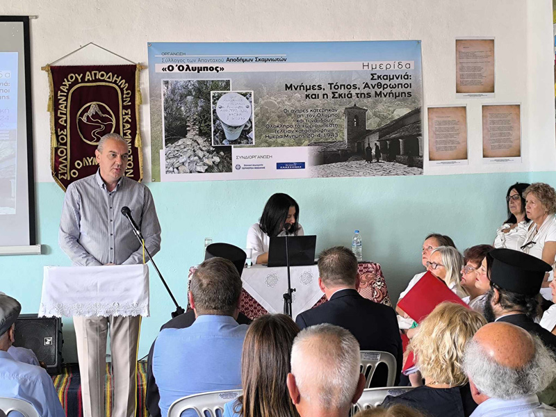 Στην Ημερίδα με τίτλο «Σκαμνιά: Μνήμες, Τόπος, Άνθρωποι και η Σκιά της Μνήμης» που διοργάνωσε ο Σύλλογος Απανταχού Αποδήμων Σκαμνιωτών «Ο Όλυμπος» στο παλιό δημοτικό σχολείο της Σκαμνιάς συμμετείχε ο Δήμαρχος Ελασσόνας κ. Ν. Γάτσας. Ο κ. Γάτσας χαιρέτισε την εκδήλωση και ασπάστηκε το στόχο της διοργάνωσης που είναι η ανάδειξη των γεγονότων του 1943 και η ενίσχυση του αιτήματος για την αναγνώριση της Σκαμνιάς ως μαρτυρικής κοινότητας.
