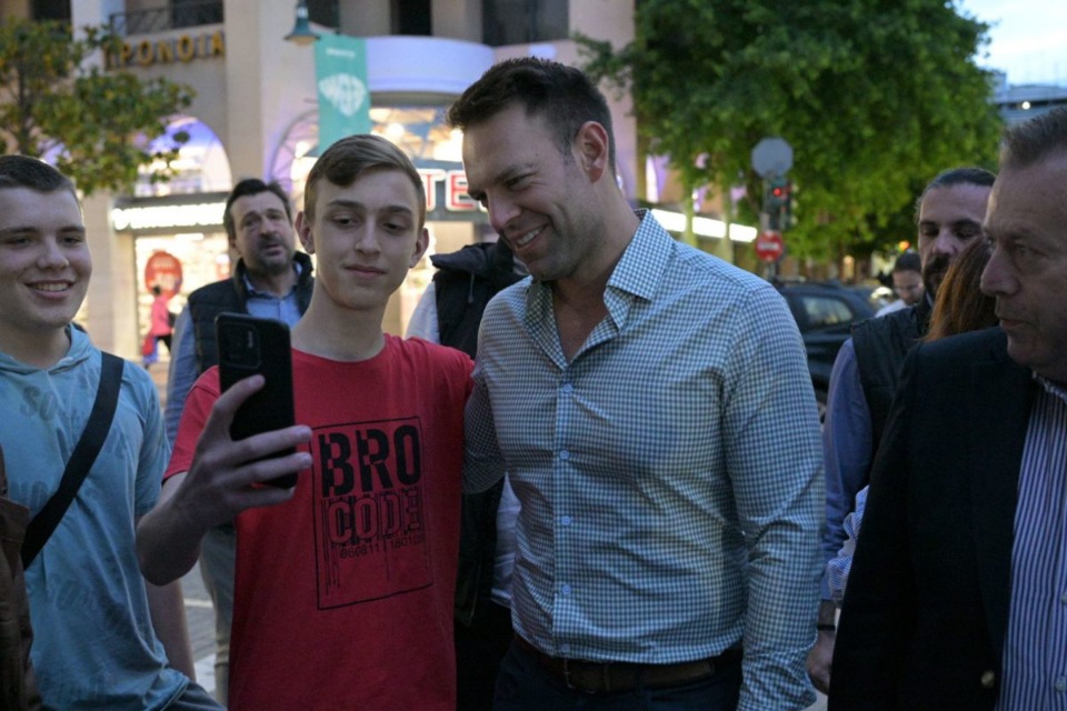 Στην Λάρισα ο Στέφανος Κασσελάκης: Έκανε βόλτα στην Ταχυδρομείου