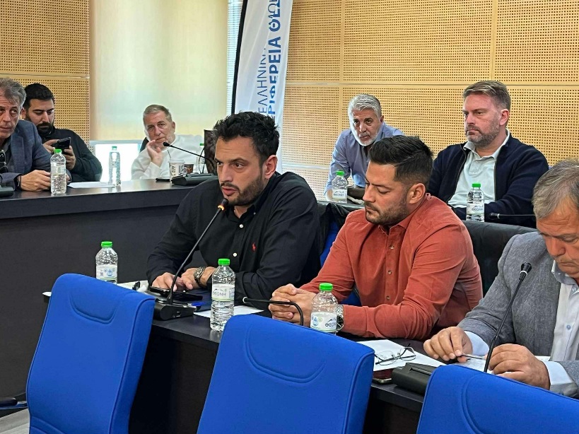 <<Ως Δήμαρχος Τυρνάβου, μέλος της Πανελλαδικής Επιτροπής των Μπλόκων και γραμματέας της Ομοσπονδίας Αγροτικών Συλλόγων Νόμου Λάρισας, θεωρώ παράλειψη που δεν καλέστηκαν σήμερα εδώ οι Ενωτικές Ομοσπονδίες. Η Π.Ε.Μ για χρόνια με αγώνες, αλλά και με σχετικές ημερίδες των Ενωτικών Ομοσπονδιών Καρδίτσας και Λάρισας μιλάει για την εκτροπή του Άνω ρου του Αχελώου, με την προϋπόθεση της σύγκρουσης και ρήξης με την ΚΑΠ, γιατί μόνο έτσι μπορεί να οδηγήσει σε ανάπτυξη της παραγωγικότητας, με φθηνά και ποιοτικά προϊόντα για τον λαό μας.