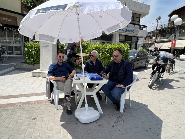 Οι τοπικές οργανώσεις έχουν στήσει τα κιόσκια τους στο κέντρο της πόλης και δίνουν τον δικό τους αγώνα για το κόμμα τους.
