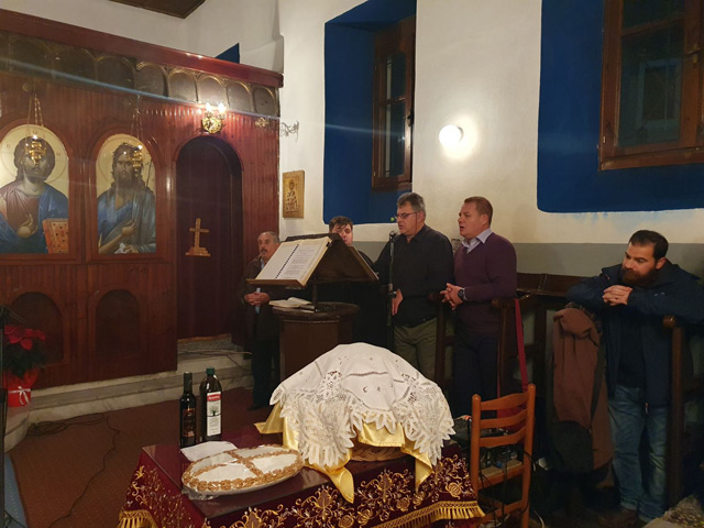Τον εσπερινό τέλεσαν οι ιερείς πάτερ Τιμόθεος και Δημήτριος με την συνοδεία των ψαλτών καθηγητή Χριστόφορου Καρυώτη, Γεωργίου Μπεντικούγια και του εορτάζοντα Νικολάου Μαλακού πρώην Δήμαρχου Τυρνάβου.