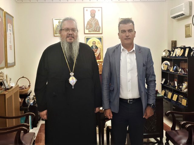 Συνάντηση με τον Σεβασμιώτατο Μητροπολίτη Λαρίσης & Τυρνάβου, κ.κ.Ιερώνυμο είχε ο υποψήφιος δήμαρχος Λαρισαίων, Θανάσης Μαμάκος, εγκαινιάζοντας τον κύκλο επαφών του με τις αρχές της Λάρισας, ενόψει των δημοτικών εκλογών του Οκτωβρίου.
