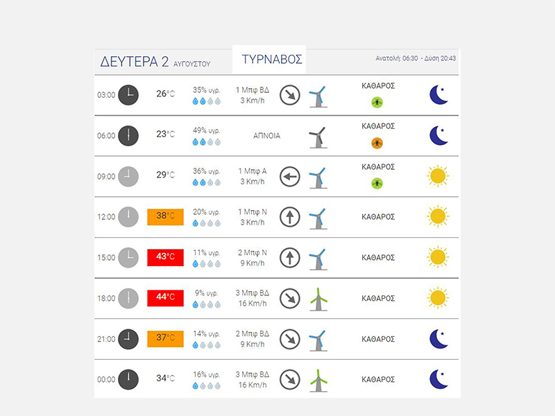 Στους 44 βαθμούς ο υδράργυρος σήμερα 2 Αυγούστου στον Τύρναβο