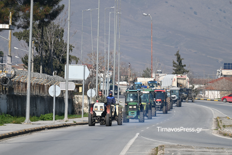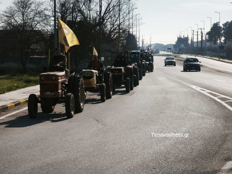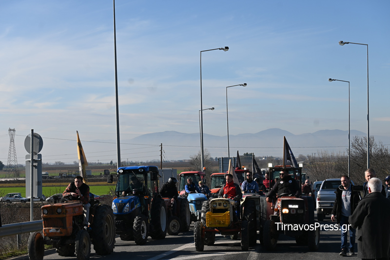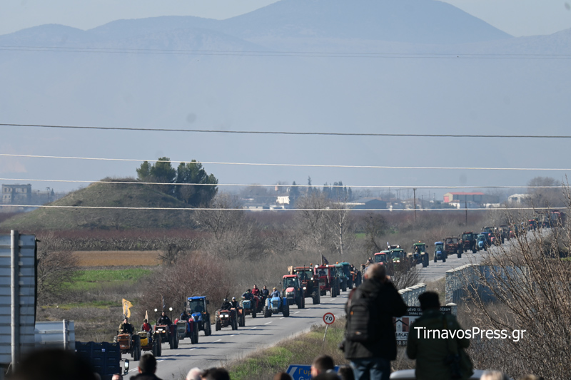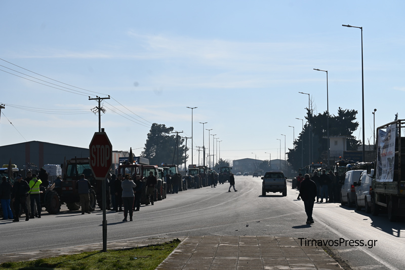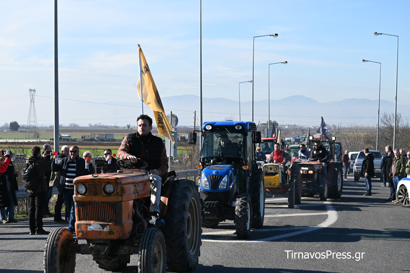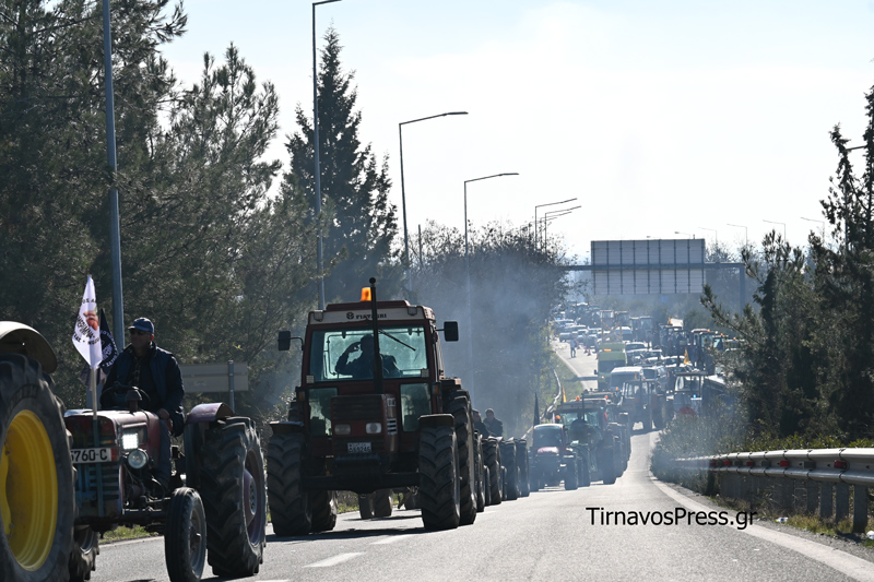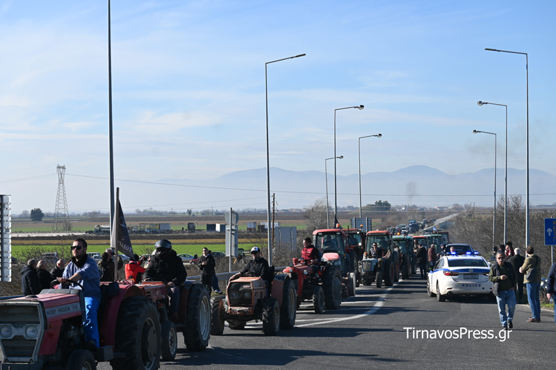 Από νωρίς το πρωί, δεκάδες τρακτέρ συγκεντρώθηκαν έξω από το Οινοποιείο Τυρνάβου, σχηματίζοντας μια εντυπωσιακή πομπή που κατευθύνθηκε προς τον κόμβο της Γυρτώνης. Εκεί, τα τρακτέρ παρατάχθηκαν κατά μήκος του δρόμου, δημιουργώντας μια εικόνα ενότητας και αποφασιστικότητας.