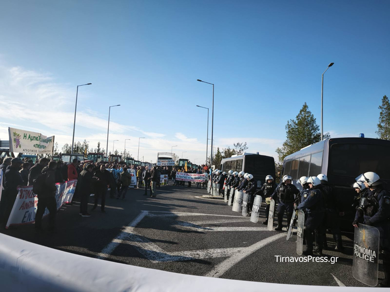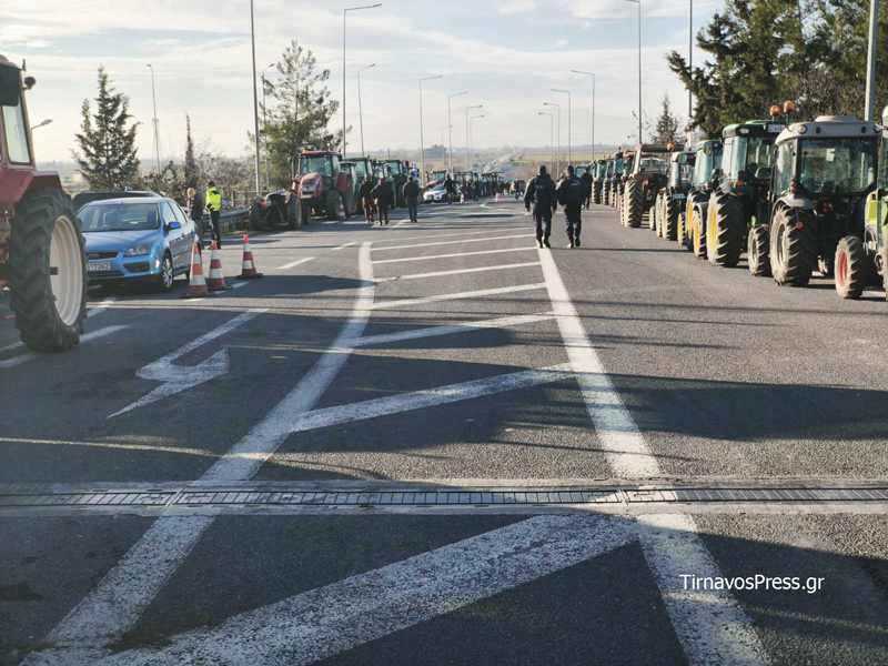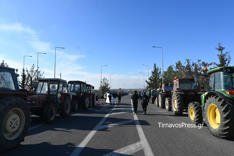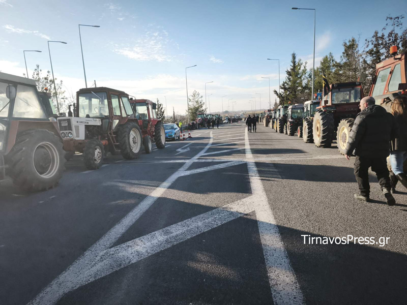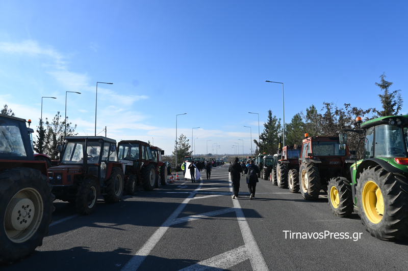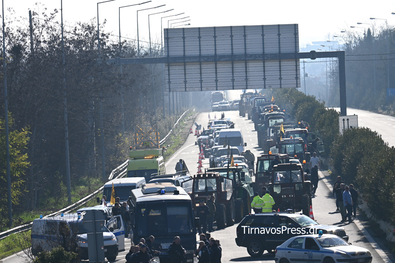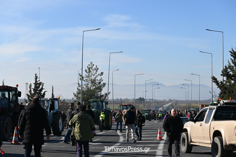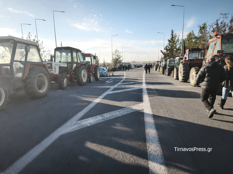Από νωρίς το πρωί, δεκάδες τρακτέρ συγκεντρώθηκαν έξω από το Οινοποιείο Τυρνάβου, σχηματίζοντας μια εντυπωσιακή πομπή που κατευθύνθηκε προς τον κόμβο της Γυρτώνης. Εκεί, τα τρακτέρ παρατάχθηκαν κατά μήκος του δρόμου, δημιουργώντας μια εικόνα ενότητας και αποφασιστικότητας.