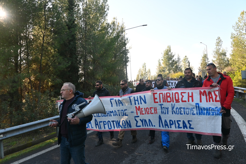 «Ο δήμος Τυρνάβου σήμερα δίνει βροντερό παρών. Είναι πρωτοφανής ο αριθμός, πάνω από 250 τρακτέρ βρίσκονται αυτή τη στιγμή εδώ επί της ΠΑΘΕ. Ήρθαμε εδώ σήμερα για να δείξουμε το μέγεθος των προβλημάτων. Ο δήμος μας είναι σεισμόπληκτος, πλημμυροπαθής, οι παραγωγές είναι κατεστραμμένες και οι Τυρναβίτες αγρότες στέλνουν σήμερα το μήνυμα».