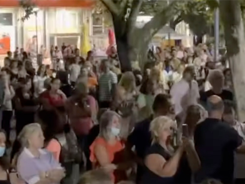 Πλήθος κόσμου συγκεντρώθηκε το βράδυ της Τετάρτης στην Κεντρική πλατεία της Λάρισας για να διαμαρτυρηθεί κατά του υποχρεωτικού εμβολιασμού.