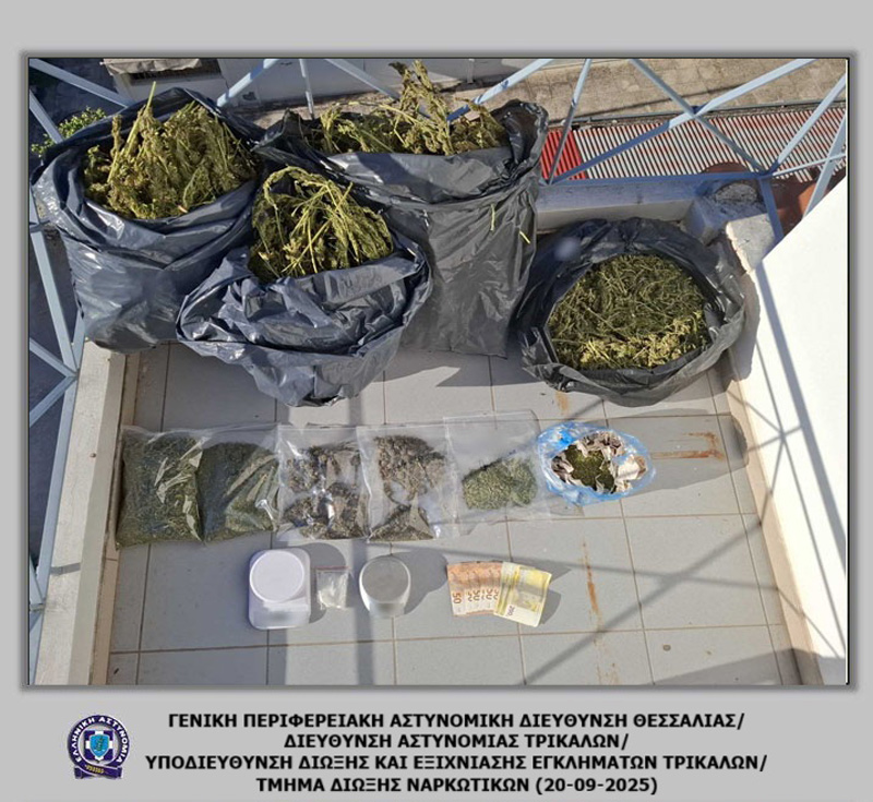 Συνελήφθη, χθες (19-09-2025) το μεσημέρι στην ευρύτερη περιοχή των Τρικάλων, από αστυνομικούς του Τμήματος Δίωξης Ναρκωτικών της Υποδιεύθυνσης Δίωξης και Εξιχνίασης Εγκλημάτων Τρικάλων, -1- ημεδαπός άνδρας, σε βάρος του οποίου σχηματίστηκε δικογραφία για παράβαση της νομοθεσίας περί ναρκωτικών.