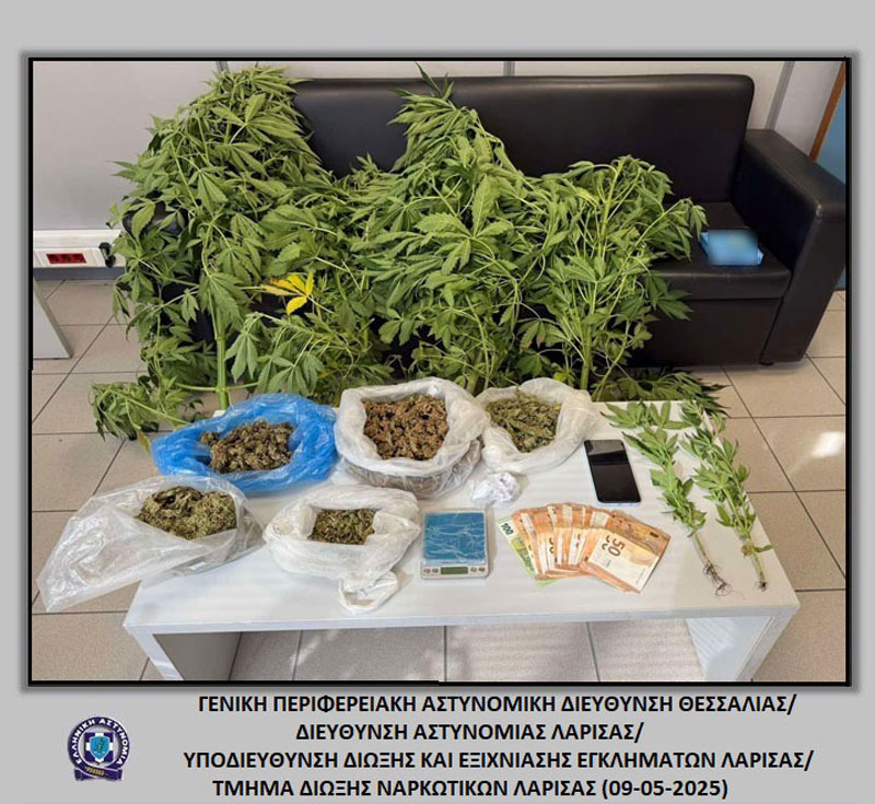 Σύλληψη άνδρα στη Λάρισα για καλλιέργεια και κατοχή κάνναβης – Κατασχέθηκαν δενδρύλλια και μετρητά