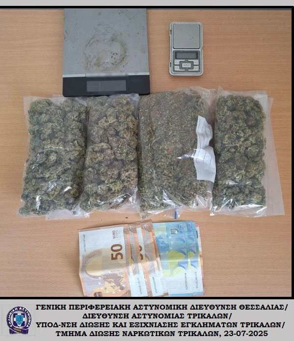 Συνελήφθη, χθες (22-07-2025) το πρωί σε περιοχή του νομού Θεσσαλονίκης, από αστυνομικούς του Τμήματος Δίωξης Ναρκωτικών της Υποδιεύθυνσης Δίωξης και Εξιχνίασης Εγκλημάτων Τρικάλων, ένας ημεδαπός άνδρας, για παράβαση της νομοθεσίας περί ναρκωτικών.