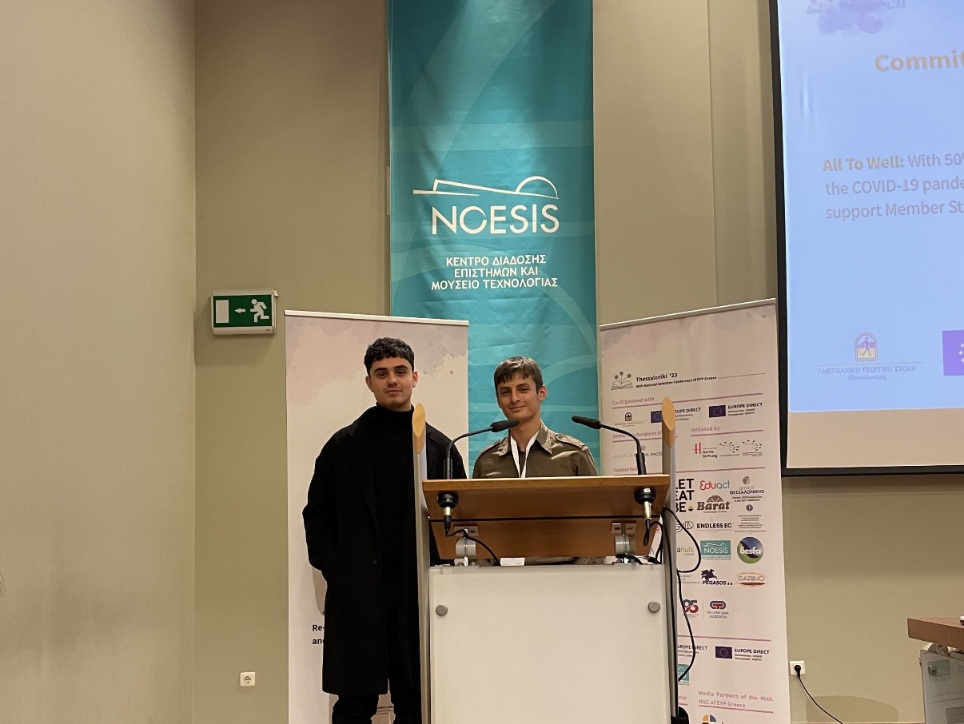 Ο μαθητής της Α’ Λυκείου Ζαγκότης Νικόλαος επελέγη να εκπροσωπήσει την ομάδα του στην ολομέλεια της Συνδιάσκεψης των Νέων, εκθέτοντας Defense Speech, αποτρέποντας <<επίθεση>> από τις υπόλοιπες ομάδες.