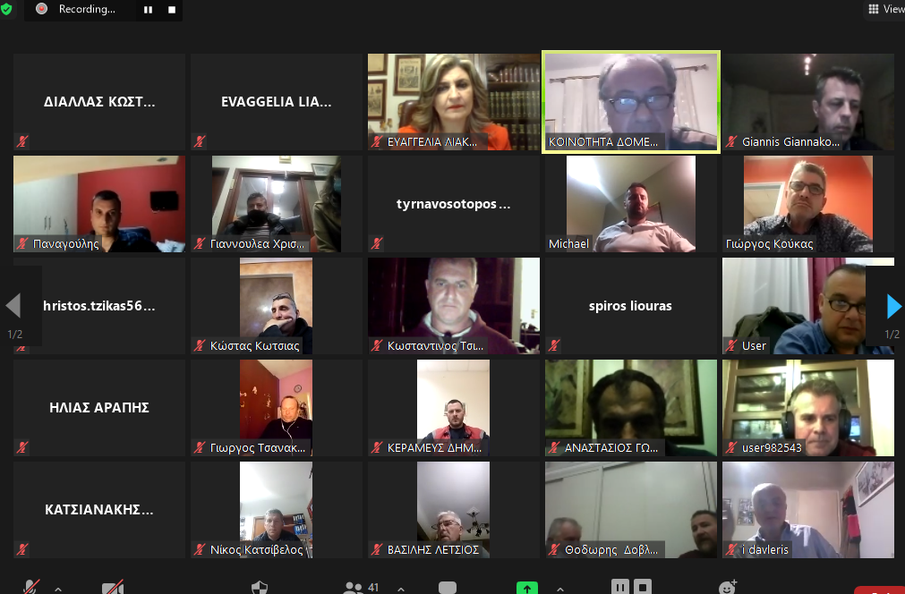 Διαδοχικές συναντήσεις με τηλεδιασκέψεις και δια ζώσης ,είχαν με τους Βουλευτές του νομού Λάρισας τα μέλη της συντονιστικής επιτροπής της Ένωσης Κοινοτήτων . Συγκεκριμένα την Παρασκευή 5/2/2021 πραγματοποιήθηκε τηλεδιάσκεψη με την Βουλευτή του ΚΙΝΑΛ