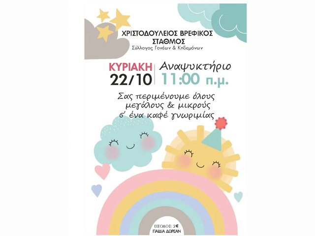 Συνάντηση γνωριμίας για το Χριστοδούλειο βρεφικό σταθμό την Κυριακή 22 Οκτωβρίου