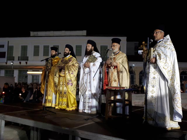 Η συνάντηση των επιτάφιων στην Κεντρική πλατεία Τυρνάβου συνοδεία της Φιλαρμονικής Δ.Τ