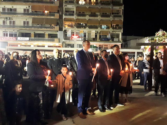 Μετά από 2 δύσκολα χρόνια που μας κράτησαν μακριά, πλήθος κόσμου βρέθηκε ξανά στην Κεντρική Πλατεία Τυρνάβου για να συνοδεύσει κρατώντας λαμπάδες, τους επιτάφιους όλων των εκκλησιών μας και να ψάλλουν το “Ω γλυκύ μου έαρ”, όπου τελέστηκε σύντομη ακολουθία παρουσία του Δημάρχου Ιωάννη Κόκουρα, του προέδρου Δημοτικού Συμβουλίου Γεώργιου Σακούτσιου, του Αντιδημάρχου Πολιτισμού, Αθλητισμού και Παιδείας Χριστόφορου Κατσαρού, του Υποδιοικητή του Αστυνομικού Τμήματος Τυρνάβου Γεωργίου Πατσιαουρα και όλων των Ιερέων του Τυρνάβου. Παρόντες και ο επικεφαλής της “Πόλης που Θέλουμε” Σάμερ Αθανάσιος Αμάρι και ο Δημοτικός Σύμβουλος Ζώης Χρήστος.
