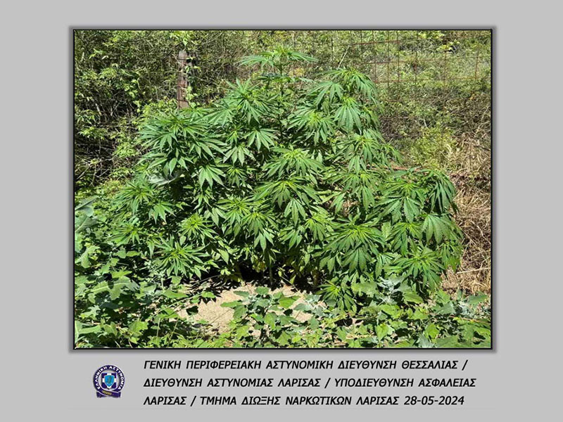 Ειδικότερα, ύστερα από κατάλληλη αξιοποίηση στοιχείων για καλλιέργεια δενδρυλλίων κάνναβης από τον δράστη σε περιοχή του Δήμου Τεμπών, από τους αστυνομικούς εντοπίστηκαν -2- φυτείες δενδρυλλίων κάνναβης, η μεν πρώτη αποτελούμενη από -21- καλλιεργούμενα δενδρύλλια κάνναβης, ύψους από -1,2- έως -2- μέτρα και η δεύτερη από -5- καλλιεργούμενα φυτά-δενδρύλλια κάνναβης, ύψους από -7- έως -30- εκατοστά, τα οποία εκριζώθηκαν και κατασχέθηκαν.