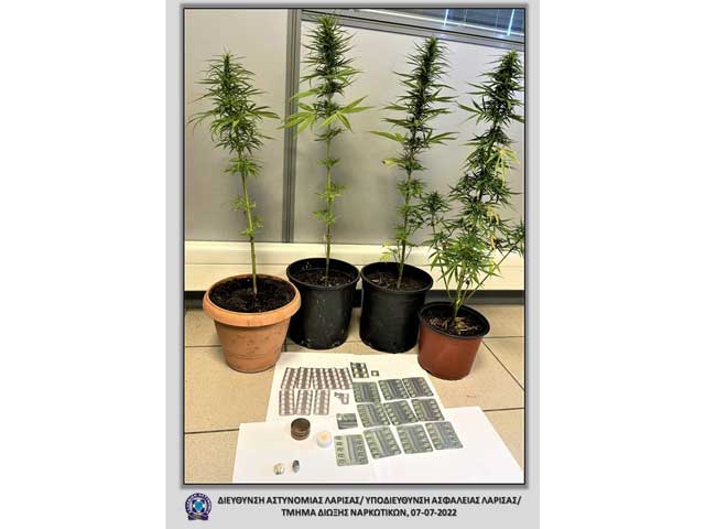 Συνελήφθη ημεδαπός στη Λάρισα – Κατασχέθηκαν, μεταξύ άλλων, -189- ναρκωτικά δισκία, -4- καλλιεργούμενα δενδρύλλια κάνναβης και μικροποσότητα κάνναβης