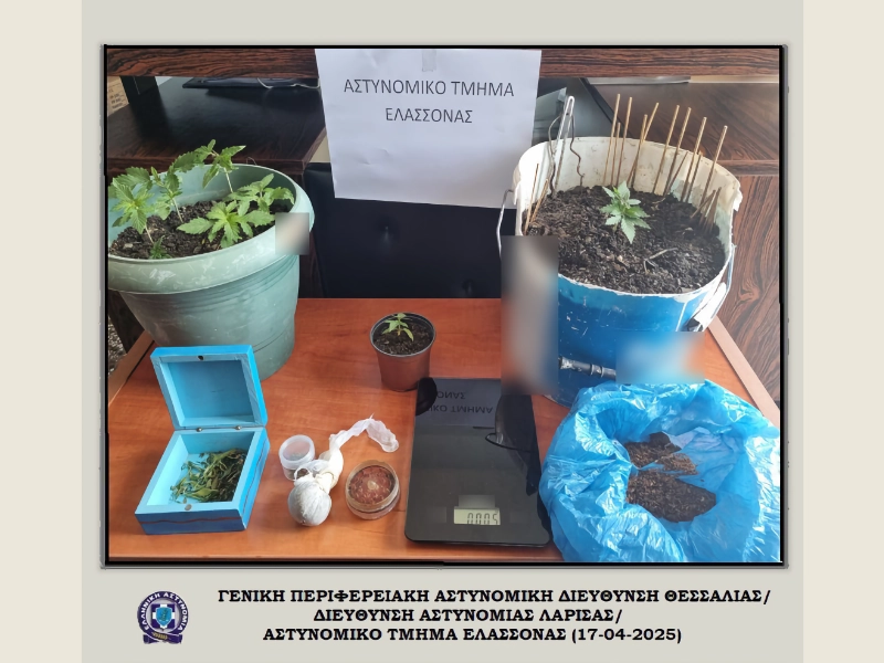 Συνελήφθη, χθες (16-04-2025) το μεσημέρι στην Ελασσόνα, από αστυνομικούς του Αστυνομικού Τμήματος Ελασσόνας, ένας ημεδαπός άνδρας, για παράβαση της νομοθεσίας περί ναρκωτικών.