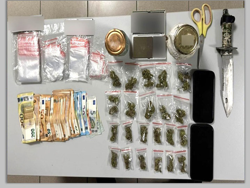 Ειδικότερα, στο πλαίσιο καταπολέμησης της διακίνησης ναρκωτικών ουσιών και ύστερα από κατάλληλη αξιοποίηση στοιχείων, οι δράστες κατελήφθησαν να επιβαίνουν σε -2- Ι.Χ. επιβατικά αυτοκίνητα, απομακρυνόμενοι από αγρόκτημα, ιδιοκτησίας του ενός, στο οποίο απέκρυπταν ναρκωτικές ουσίες, ενώ στην κατοχή τους βρέθηκαν συνολικά και κατασχέθηκαν -2- κινητά τηλέφωνα, το χρηματικό ποσό των -2.315- ευρώ και -1- μαχαίρι, κυνηγετικού τύπου.