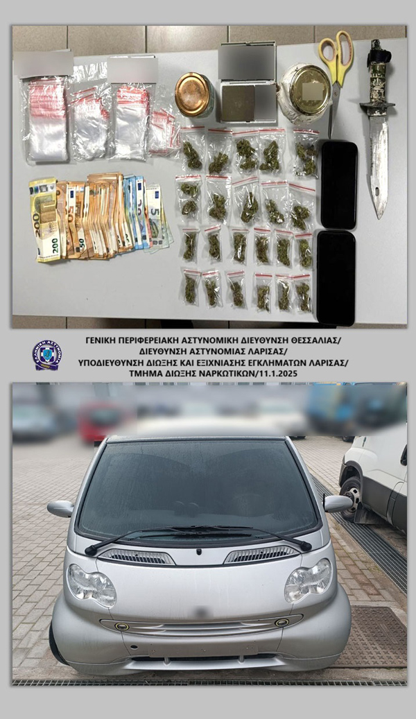 Συνελήφθησαν, χθες (10-01-2025) το μεσημέρι στον Τύρναβο, από αστυνομικούς του Τμήματος Δίωξης Ναρκωτικών της Υποδιεύθυνσης Δίωξης και Εξιχνίασης Εγκλημάτων Λάρισας, -2- ημεδαποί άνδρες, σε βάρος των οποίων σχηματίστηκε δικογραφία, κατά περίπτωση, για παράβαση των νομοθεσιών περί ναρκωτικών και περί όπλων.